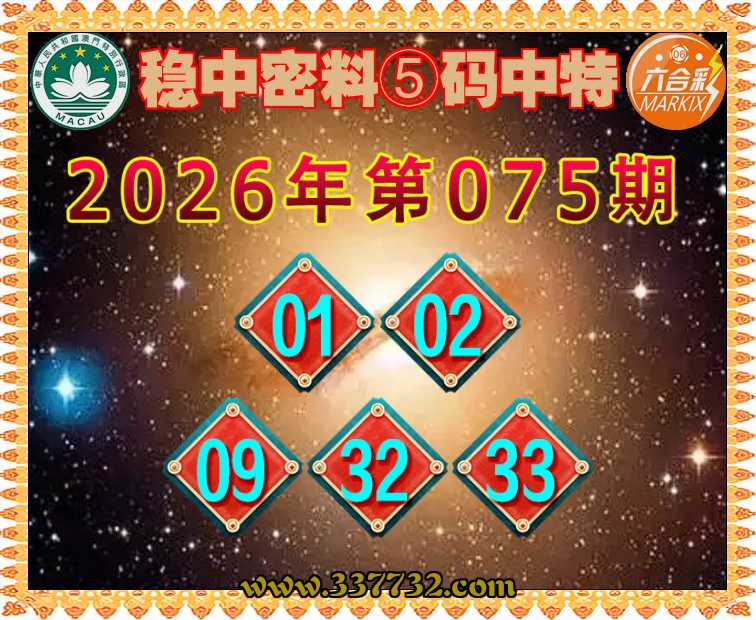 075期: 《稳中密料》 ⑤码中特【01.02.09.32.33】开:33准上榜高手